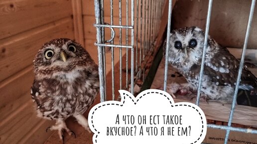 Домовый сыч Лучик присматривает за мохноногим сычом Чучундрием. Маленькие совы с большой милотой