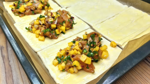 Первый противень не продержался и 20 минут: готовлю куриную грудку с картофелем на слоеном тесте вместо обычных пирожков и котлет.