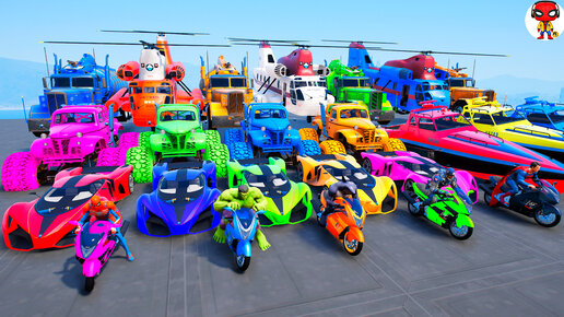 Человек-Паук в ГТА 5! Супер автомобили, мотоциклы, вертолеты, лодки! Эпическая трюковая карта для супергероев №11