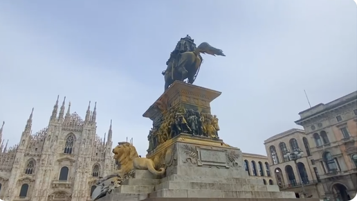 Выбираю Италию: Милан, площадь Дуомо и жёлтый памятник Витторио Эмануэле II всё ещё жёлтый. Песня: Andrea Grimaldi - Gente di strada