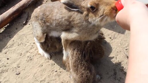 Зайчиха кормит зайчат, но не "бесплатно"! Пуша и приёмыши (архив 2020)