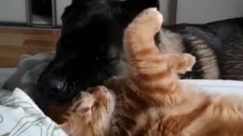 Американская акита и котенок Мейн кун, друзья-товарищи 😂#собака #мейнкун #акита #котенок #дружбакотаисобаки