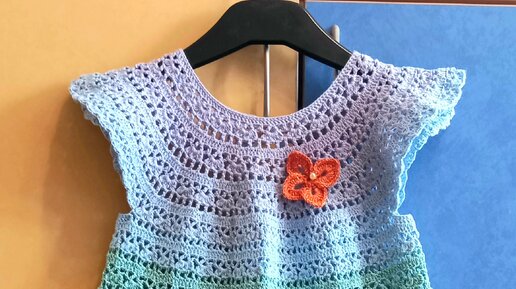 Ажурное платье крючком "Радуга" на девочку 3 года, пряжа полухлопок ЯнАрт Фловерс, летнее ажурное безшовное платье крючком на девочку