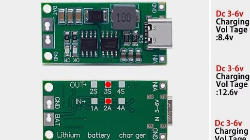 модуль заряда литиевых аккумуляторов 2S 3S 4S от USB