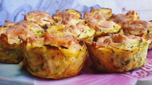 Кабачковые маффины с грудкой под сырной хрустящей корочкой. Подойдёт и худеющим.
