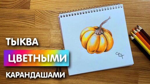 Как нарисовать цветными карандашами "Тыкву" | Рисунок для начинающих поэтапно и легко