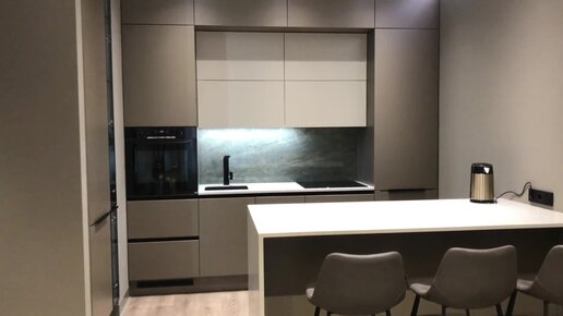Дизайн кухни с матовыми фасадами в сложном цвете. Кухни на заказ Екатеринбург
