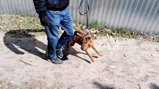 Ирландский терьер беснуется на поводке