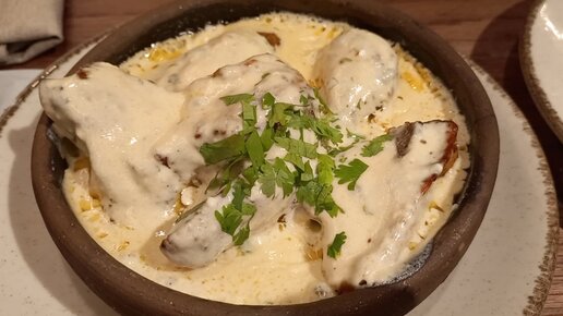 Кипящий цыпленок чкмерули в грузинском ресторане «Швили» в Дубае