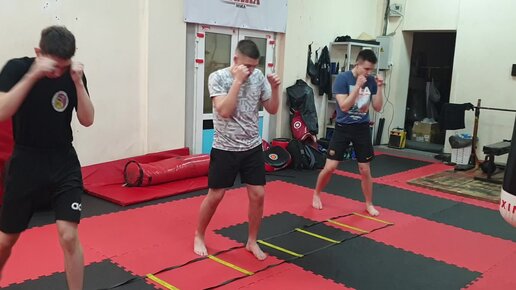 Далее: Боксёрский шаг на координационной лестнице / Ходьба с ударами в боевой стойке
