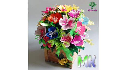 Красота из лент Цветы из атласной ленты Композиция в кашпо из палочек Мастер класс \Master diy