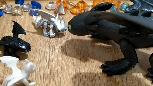 Драконы в скрытом мире. Беззубик и Дневная Фурия,а так же их малыши.