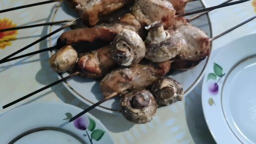 ПП ужин. Шашлык из курицы дома. Обычный салат с новым ингредиентом.