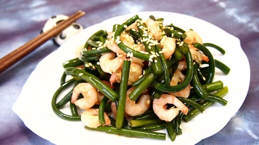 ДорамаКухня: Закуска из чесночных стрелок с креветками "Сэу маныль чон поккым" (새우마늘종볶음)