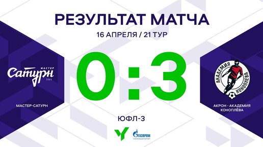 ЮФЛ-3. Мастер Сатурн - Акрон-Академия Коноплева. 21-й тур. Обзор
