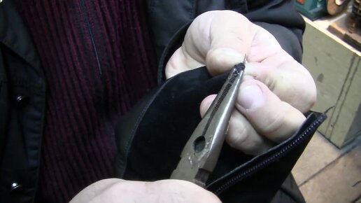 Замена бегунка с верхней части сапога, где стоят железные скобы