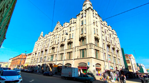 Дом с длинноусыми старцами в историческом торговом центре Санкт-Петербурга