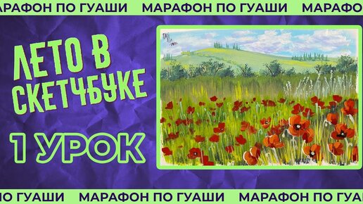 Рисуем пейзаж с маками! Подробный урок рисования! ЛЕТО В СКЕТЧБУКЕ 1 урок.