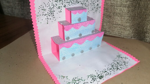 Как из бумаги сделать милую открытку с объёмным тортом