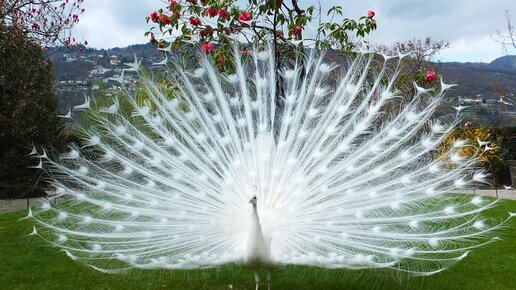 Самцы белого и обыкновенного павлина распустили свои роскошные перья надхвостья