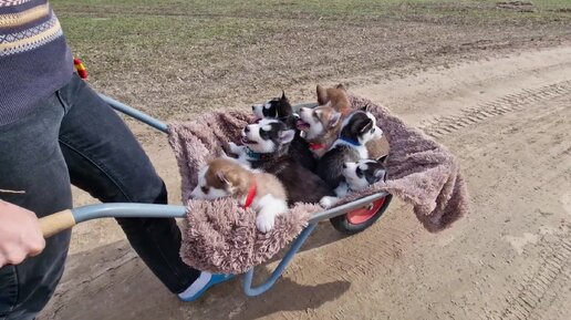 Целая тележка счастья! Щенки знакомятся с миром😍