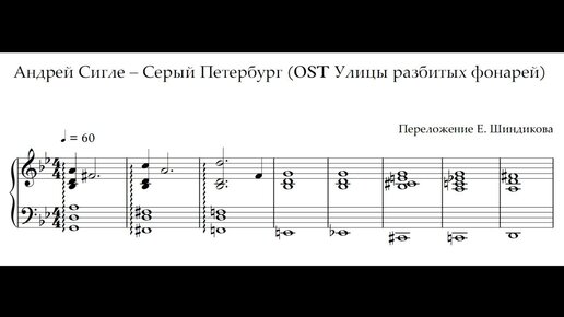 Ноты Андрей Сигле – Серый Петербург (OST Улицы разбитых фонарей)