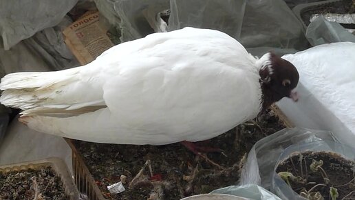 Белый голубь с коричневой головой