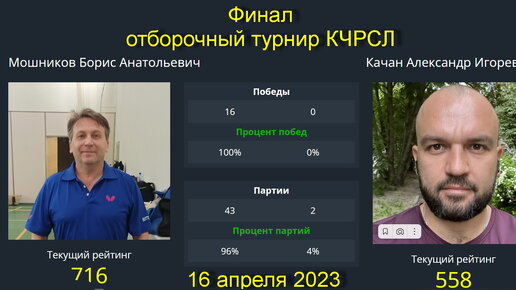 Финал Мошников Б.(716)-Качан А.(558) . Отборочный турнир КЧРСЛ. 16 апреля 2023