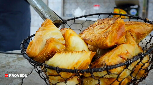 Как готовят самсу самаркандские пекари. Сочная слоеная самса прямо из тандыра. Узбекистан. Ровшан Ходжиев. Проведу