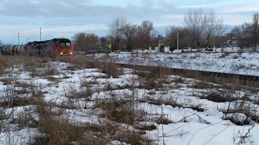 2ТЭ25Км - 0345 с наливным поездом.