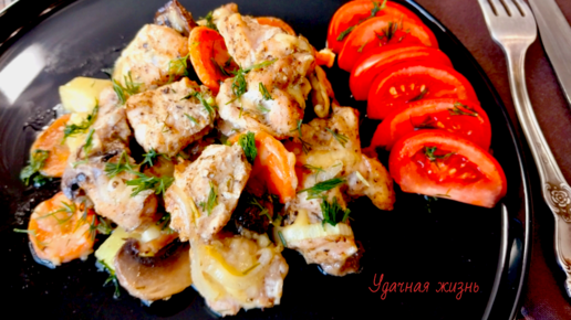 Индейка с грибами - сочное, ароматное, сытное рагу в духовке. Простой и быстрый рецепт