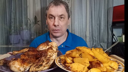 МУКБАНГ/ ЦЫПЛЕНОК ТАБАКА / КАРТОФЕЛЬ ПО ДЕРЕВЕНСКИ / ЛЕЧО ДОМАШНЕЕ