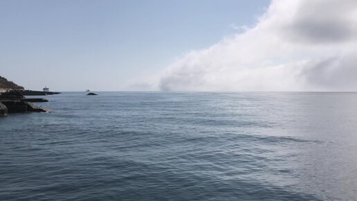 Погода в Ялте 19 апреля - туман с холодным ветром. Начало тумана - из Турции на Крым идёт густой туман в огромных облаках.