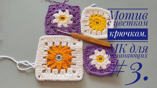 Мотив с цветком крючком. МК для начинающих #3.