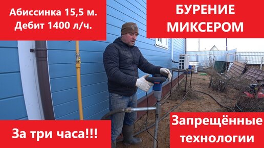 Абиссинка 15,5 м. Бурение миксером. 3 часа и готова! Abyssinian 15.5 m. Drilling with a mixer.
