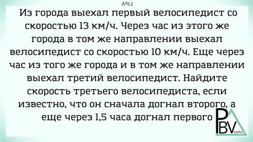3 велосипедиста и догонялки ▶ №62 (Блок - интересные задачи)