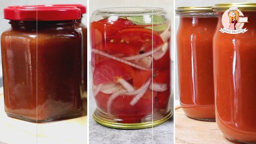 Мои заготовки на зиму. Снимаю пробу (Выпуск №5). Кетчуп, помидоры дольками с луком и томатный сок