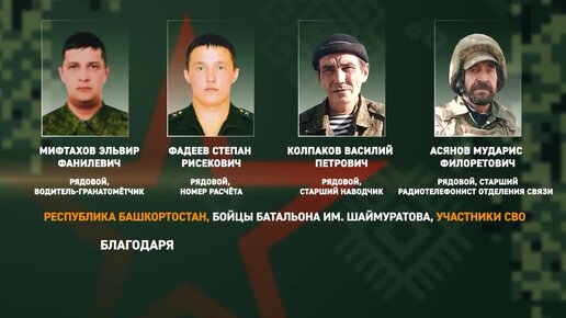 Башкортостан - это время героев! Эльвир Мифтахов, Степан Фадеев, Василий Колпаков и Мударис Асянов - бойцы батальона имени Шаймуратова.