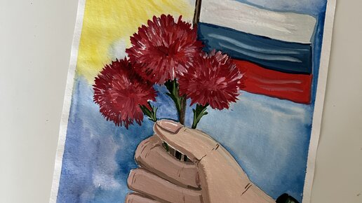 Открытка на 9 мая. Акварель и гуашь. Если нужен шаблон, напишите в комментариях. Я его добавлю в папку шаблонов.
