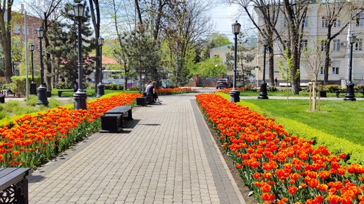 В сквере Дружбы цветут махровые тюльпаны