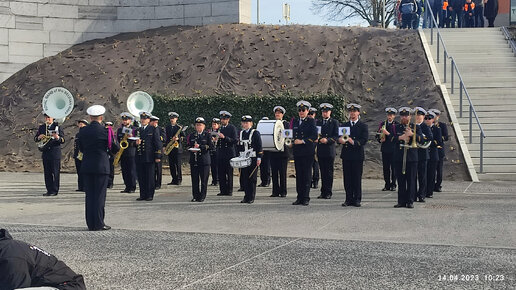 Оркестр Военно Морских сил Бельгия Tournai на открытии нового отреставрированного моста.