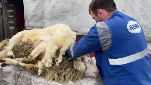 Как муж подстригал барана (годовалую шерсть) овечьими ножнями. Баран не дёрнулся