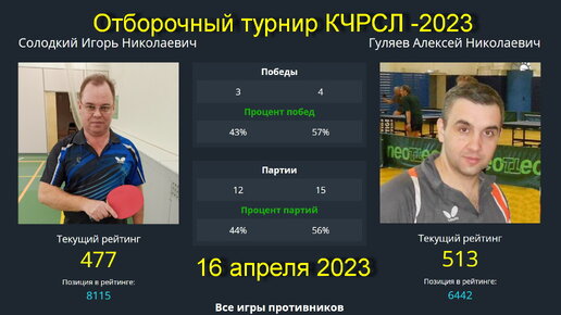 Встреча Солодкий И.(477) -Гуляев А.(513) . Отборочный турнир КЧРСЛ 16 апреля 2023