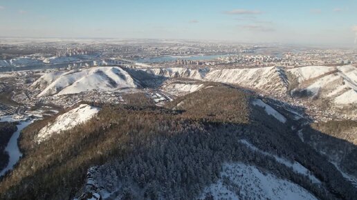 Скала Такмак и Сиенитовый карьер на Столбах с высоты, Красноярск