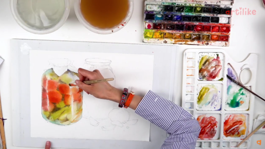 Как реалистично нарисовать овощи? Как передать объем предметов? Узнаете в этом уроке и нарисуете соленья в банке!