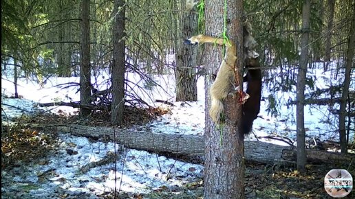Фотоловушка в лесу. Поведение куницы на приваде.