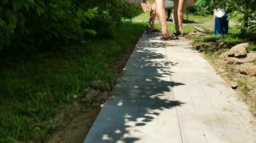 Уложила дорожку из тротуарной плитки вдоль забора на участок.