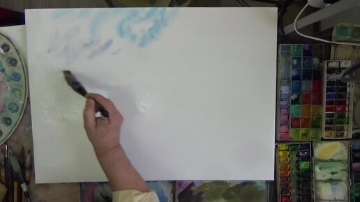Мастерская "Умная Акварель" Сергея Галеты. Волжский пейзаж - Аля прима по сырому листу. МК. ч. 1.