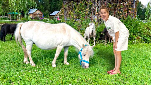 Даша и Кира гуляют и играют с лошадками Фалабело на ферме "Костин Двор"