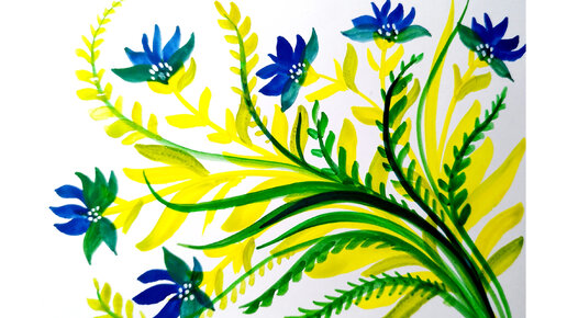 🌿💙💛🌿Декоративное рисование цветов, используя два цвета (жёлтый, синий)